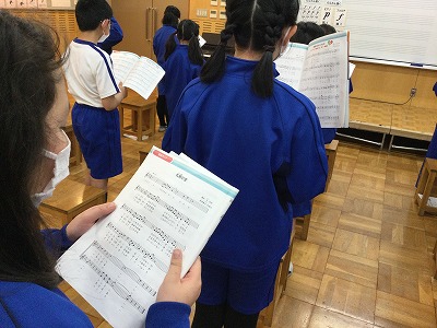 今日も、音楽室に4年生の明るい歌声が響きました。