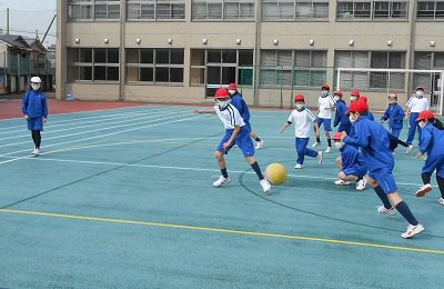 体育の学習は「ドッジボール」を行います。休み時間も熱中しているドッジボールを、みんな楽しみにしていた様子です。