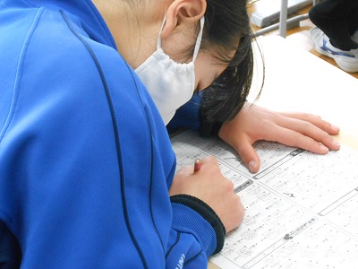 4年生の漢字総まとめとして、3学期からはくり返して同じテストをしています。前回のテストでまちがえた漢字はどれだったのかをもう一度思い出しながら、満点を目指してがんばります。