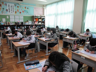 6校時は『漢字テスト』です。100点をめざして頑張りました。