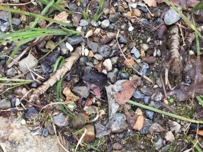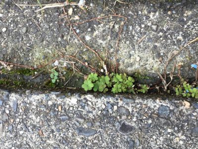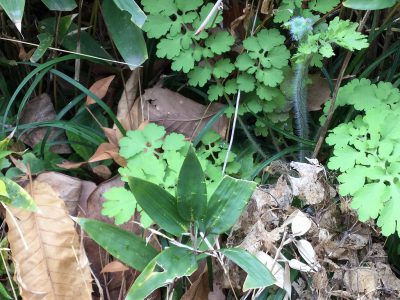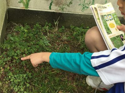 春の第一報は「カタバミ」の赤ちゃんサイズと、たんぽぽの仲間と思われる葉っぱを見つけた!というものでした。