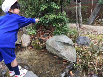 ジャージにマフラー、手袋といった、完全防寒の装備で、いざ!グラウンド&ビオトープへ!