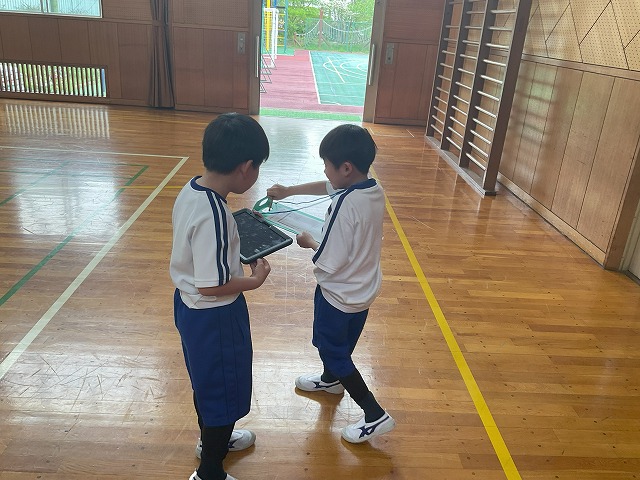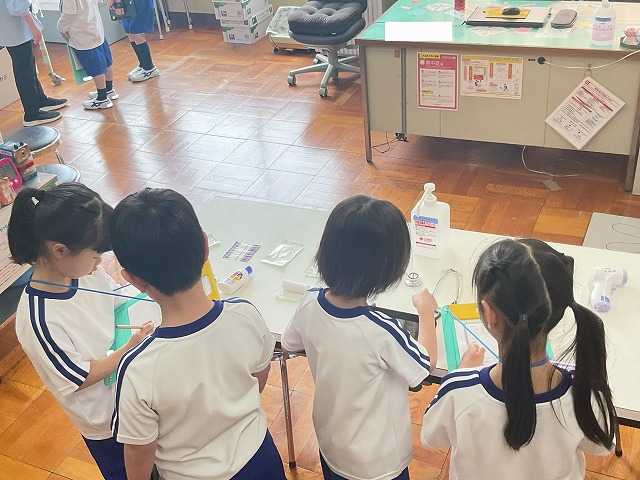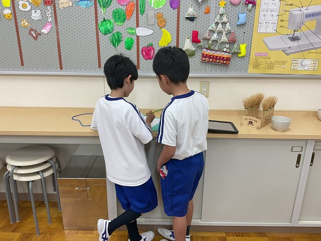 と笑顔で伝えたりする姿も見られ、1年生の目線に合わせて話している姿にも感心しました。