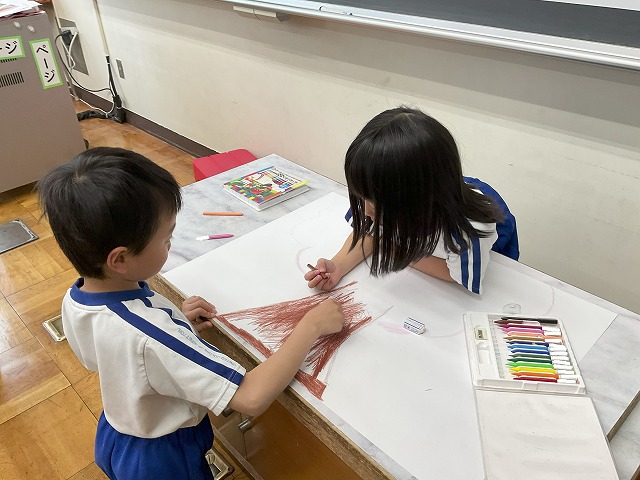さらに、「ここ、狭いから気をつけてで!」とサポートしたり、「上手に描けていてすごいね!」