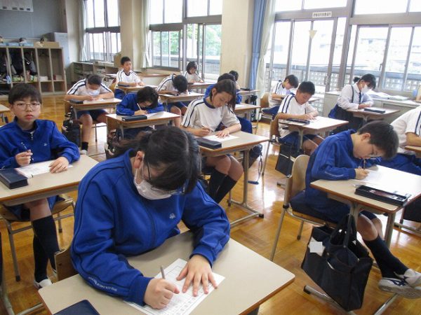 漢字テストは、漢字ドリルの文章を読み上げ、それをテスト用紙に書いていきます。1回しか読まないので、集中して聞かねばなりません。読み上げると同時に、テスト用紙に漢字を書く鉛筆の音が、一斉に響きます。