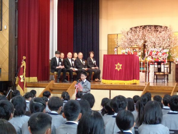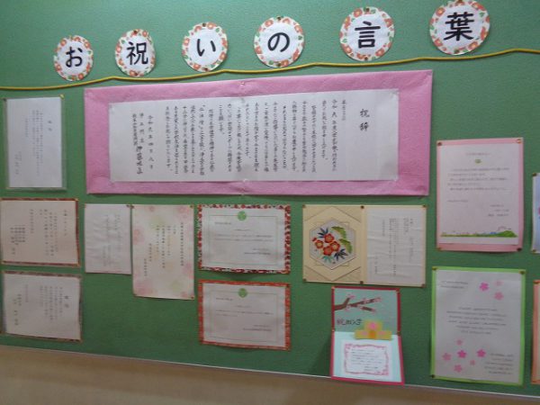 児童会代表の6年生より「お祝いの言葉」の挨拶がありました。