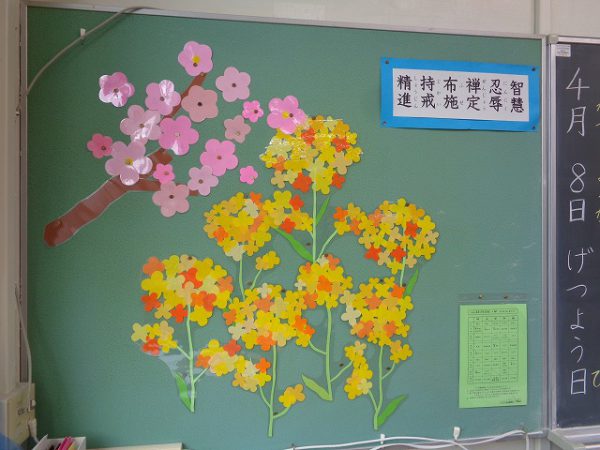 始めに、今日はお釈迦さまのお誕生日で「花まつり」入学式という特別な日であることを教えてもらいました。