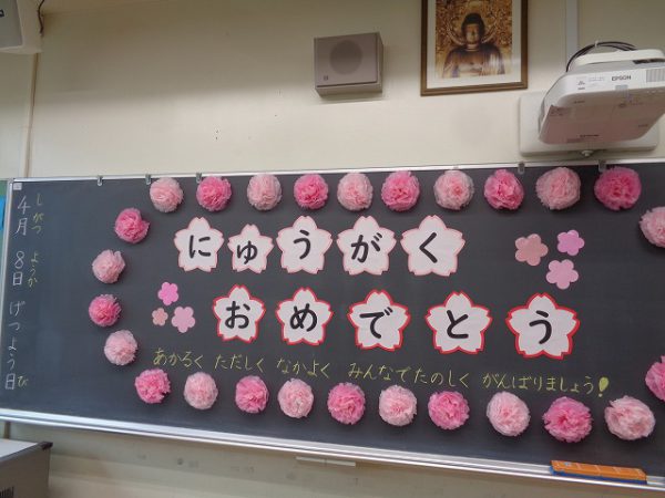 偉大なお二人のご誕生と、ピカピカの1年生の入学をお祝いし、桜の花などで いっぱいの「花まつり」入学式を行いました。
