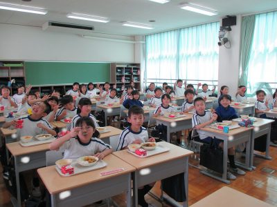 2階の教室になり、給食を運ぶ距離が長くなった3年生も、重い食缶をしっかり運んでくれていたようです。