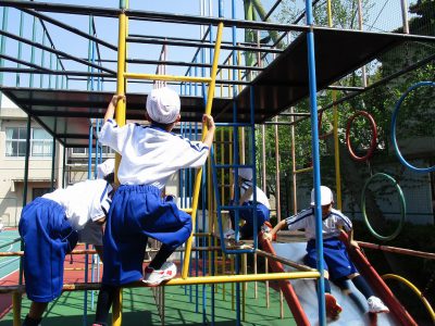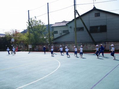 「ならびっこ」(並び方の練習)をしたり、スキップで運動場を1周したり・・・