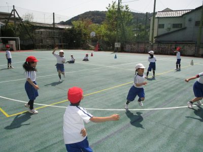 まずは、体育の「ねずみ取りゲーム」の様子です。