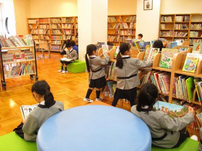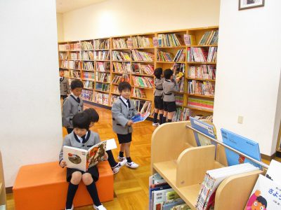 中間休みは、制服に着替えた後、みんなで図書室に行きました。