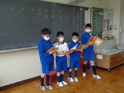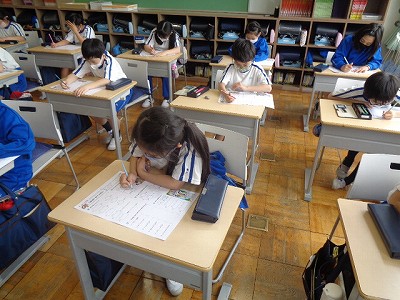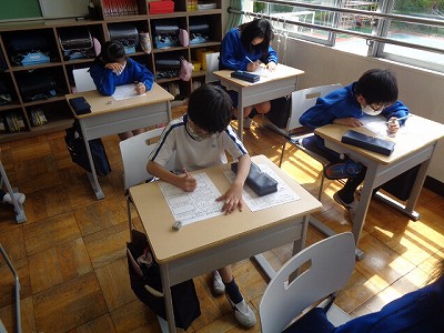 昼根っこタイムは、三年生の漢字のおさらいテストを行いました。三年生の漢字をしっかり書ききれるように、家庭学習でも学習してきた人もたくさんいました。ていねいさにも注意して、満点を目指して頑張りました。