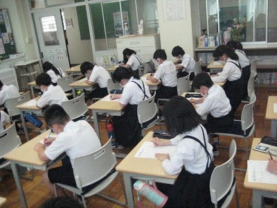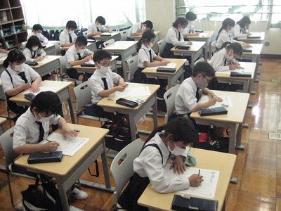 礼拝の後は、校長先生のお話を聞いて思ったこと・考えたことをノートに書きました。