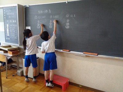 教室の習熟クラスは、教科書に載っている「整数と小数」の問題に取り組みました。