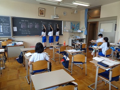 4時間目の算数は、初めて2クラスに分かれて授業を行いました。