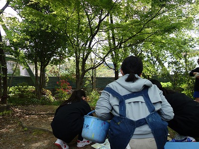 運動場のゴム地の隙間からたくましく咲くたんぽぽをスケッチしている児童もいました。目の付け所がさすがです。