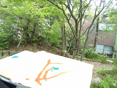 今日は校内で気に入ったものを見つけ。鉛筆などでの下描きはせずに絵の具で直接描くようです。また、画用紙ではなく描きたいものに合わせてちぎったり下地を塗ったりしたダンボールに描くことも児童には新鮮だったようです。