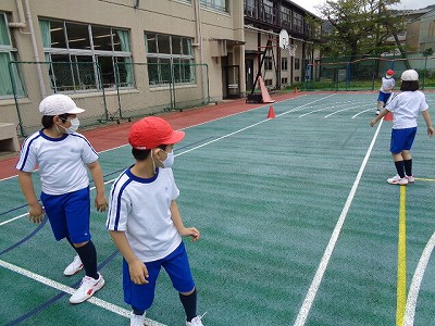 天気が回復した4時間目。体育の時間です。今日は「50メートル走」のタイムを測定しました。