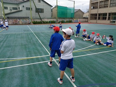 後半は、赤VS白でバトン無しリレーをしました。