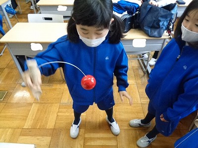 3年生の朝の時間は、教室でけん玉やオセロ、将棋、読書、お絵かきなどをして楽しく活動しています。