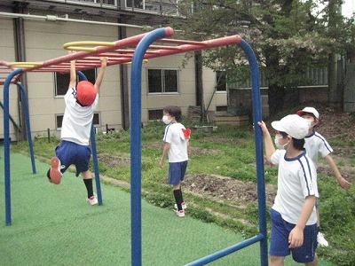ジャングルジムや鉄棒、うんていで遊ぶ姿が多く見られました。