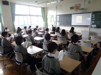 その後、丸読みで音読したり、一斉で音読したりして、話の内容を掴みました。