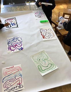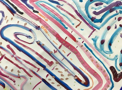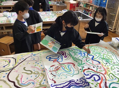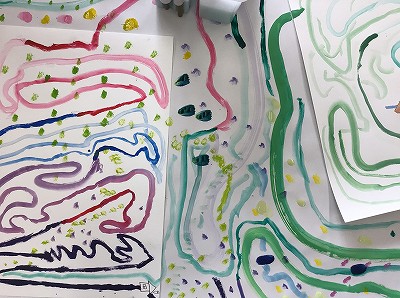 隣り合った色の組み合わせや線の太さを考えながら、絵の具の道が広がっていきます。
