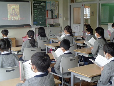 水曜日の朝は、放送礼拝からのスタートです。今日は、校長先生から入学式の様子や、基本の行いについてのお話がありました。校内での「静けさ」を大切にできるよう、どんな事ができるかクラスでも話し合いました。