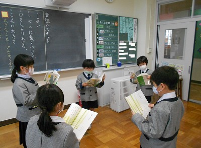 「ふきのとう」という物語を読んでいます。今日は、登場人物の様子を絵に表したり、音読のポイントをノートにまとめたりしました。