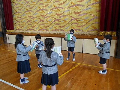 その後は、チーム毎に音読の練習をしました。担当する役を決めて、登場人物の様子や気持ちが伝わるように練習しています。