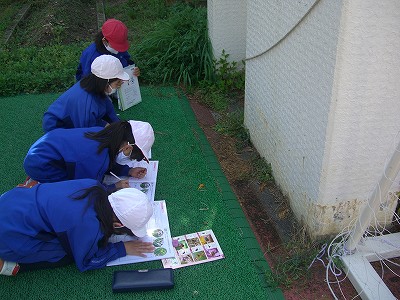 今日の理科は、外へ出て「生き物さがし」をしました。