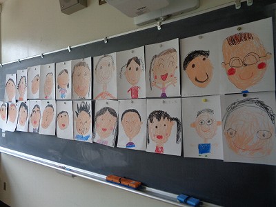 クレヨンを使って、自分の顔を描きました。
