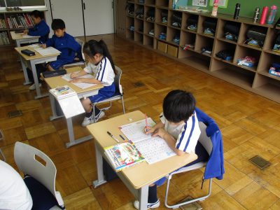 書写では、正しくえんぴつをもち、「きれいな字」「はやく」「正確に」の3つをを心がけて、書きました。
