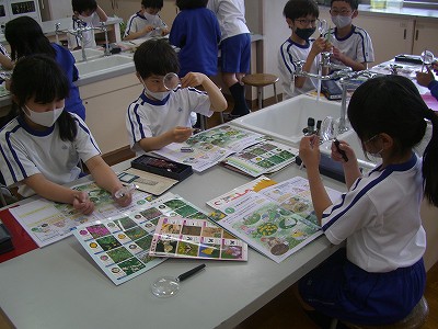 今日は、今年度初めて理科室で学習しました。話を聞くと、去年は生活科の「学校探検」もできなかったので、理科室に入ることが、ほぼ初めてのようでした。