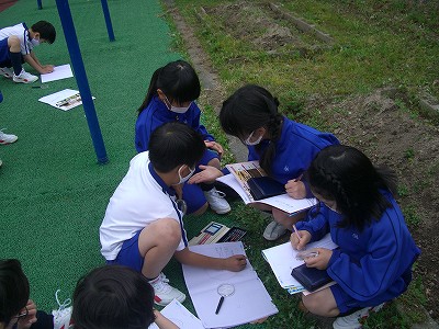 そして、外へ出かけて、ダンゴムシやお花を観察しました。