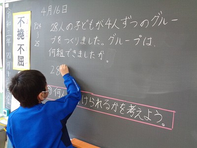 わり算の学習を進めました。わり算の式の立て方や言葉での表し方など、全体で確認しながら取り組みました。