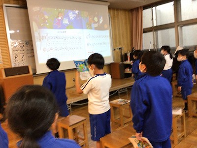 また、3番の「世界中だれでもが自由を求める その叫びがこだまする 小さな世界」というメッセージ性の高い内容であるにもかかわらず、歌うことになれてきた3年生は、「そのさ~けびが こだま~す~る」というポイントを、ていねいに思いを込めた感じで歌い上げてくれます。