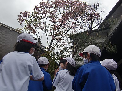 学校周辺を安全に気をつけて歩きながら、町の様子を知り、春を見つけることをめあてに出かけました。