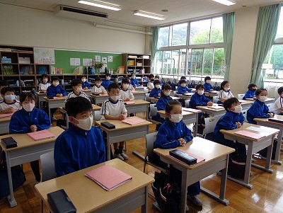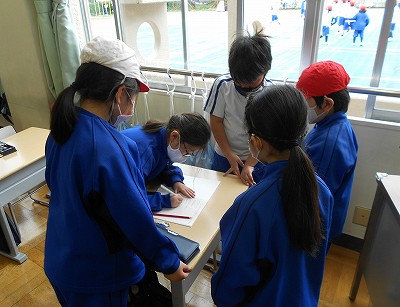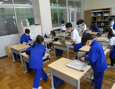 運動場が使えない休み時間は、教室で自由帳をしたり、読書をしたり、係の相談したりしながら過ごしています。
