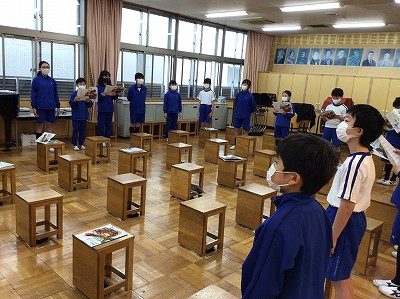 みんなそろって声合わせです。お互いの音を聞き合いながら…をめあてに練習は続きます。