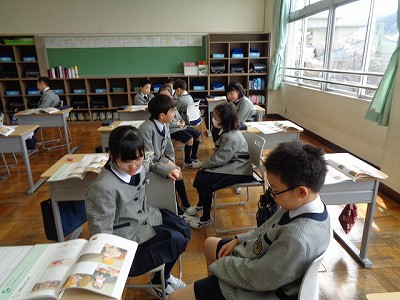 月影の時間に、道徳の教科書のお話「生きたれいぎ」を読んで学習しました。