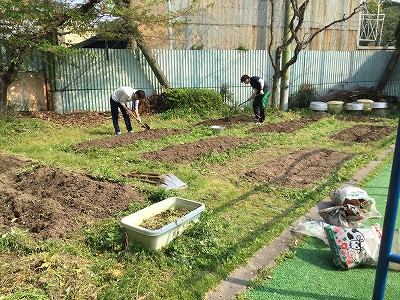 毎年4月初め、先生達みんなで活動する“土づくり”行事。