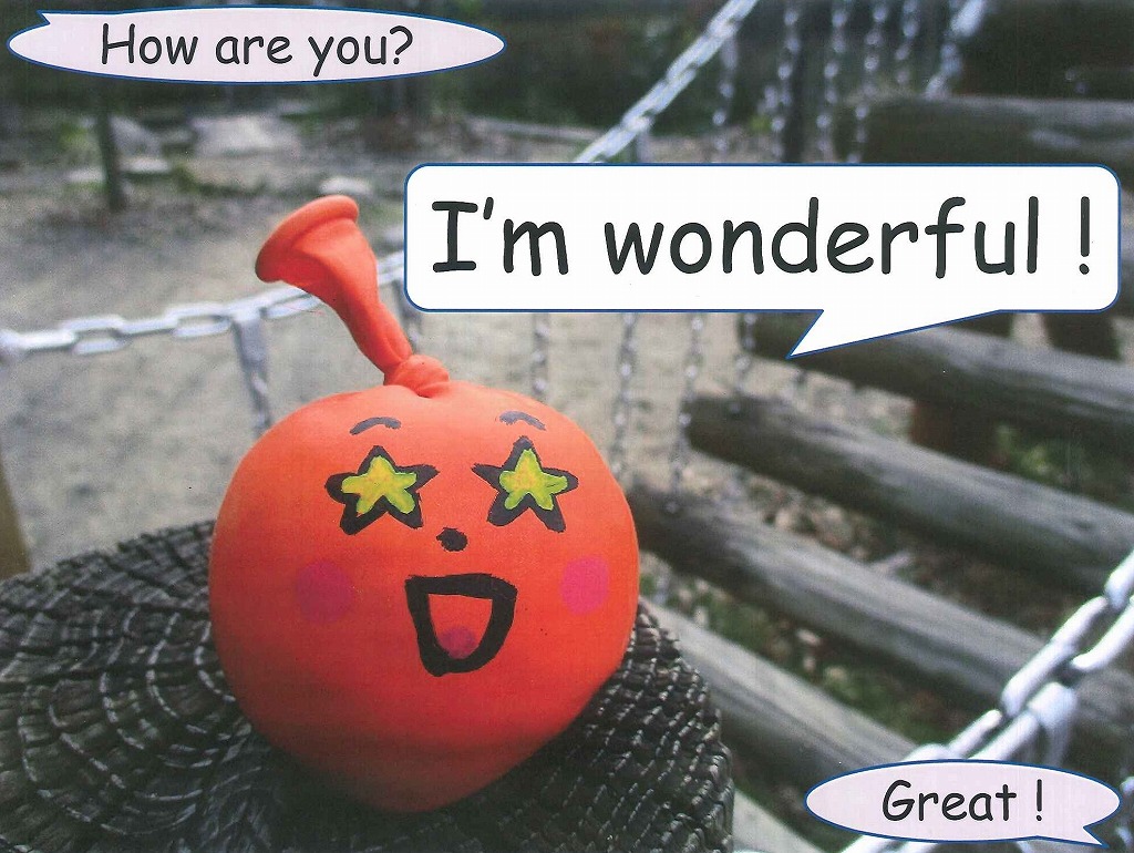 お話しした言葉は、"I'm great!" でした! "I am great!" 元気100倍のフレーズです。