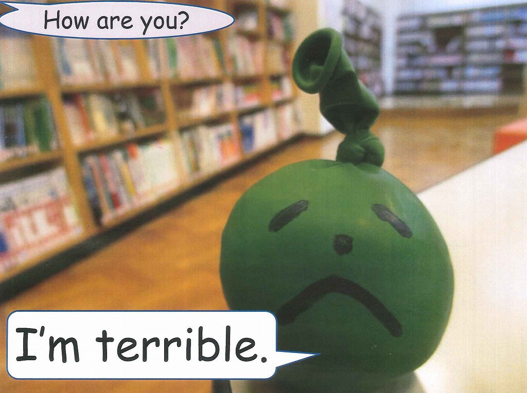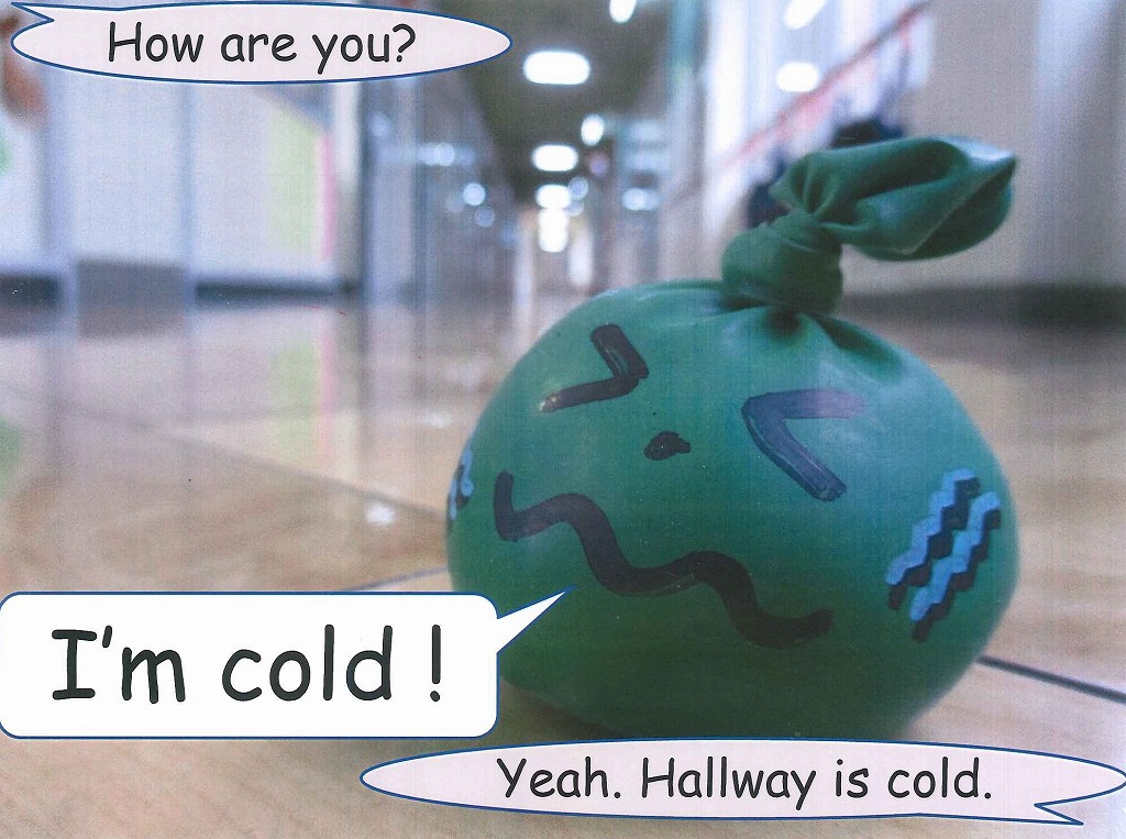 寒い時の言い方です。ろうかが寒くて “I am cold.” のバルーン君でした。