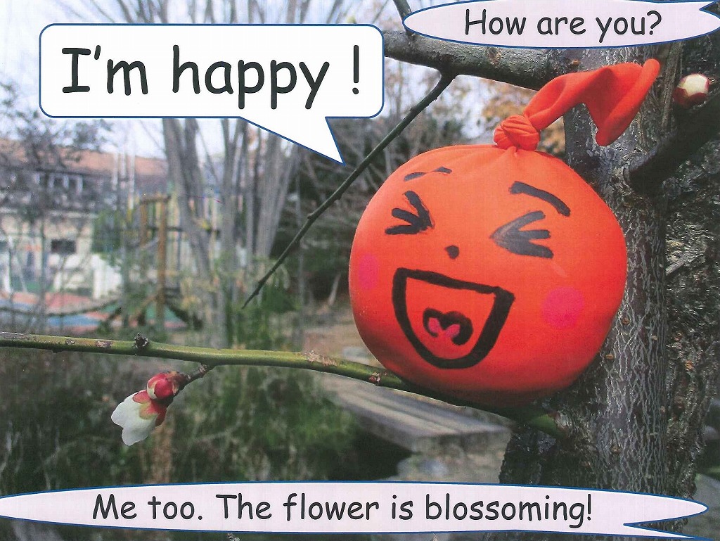 ブンキョウ バルーン君、バルーンさんと一緒に、E表現を練習しましょう。
