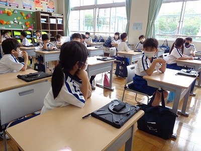 5時間目の国語は「うたにあわせてあいうえお」「あさのおひさま」の音読から始めました。音読することに慣れてきて、みんなの前で音読することにチャレンジした人もいました。