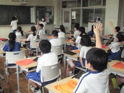 タブレットを使って、みんなでめあてにしたいことを出し合いました。
