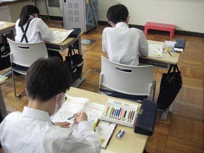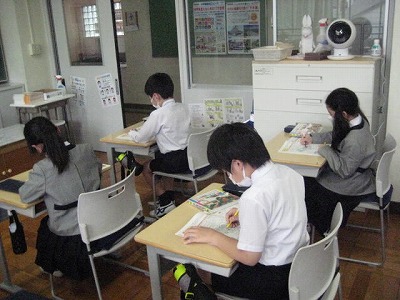 前半は、地形の様子について、土地の高さに注目しながら白地図に色を塗りました。