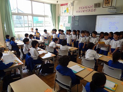 これまで2年生は、各教室を回り、1年生に分かりやすく説明できるように準備してきました。